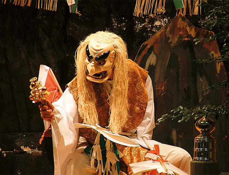 高千穂の18集落で行われる夜神楽は、各集落に神々をお招きし、神楽を奉納する神事。夜明けまで続く神楽33番の舞は、見る人を陶酔の境地に誘います。2020年1〜2月は4集落で開催されます。