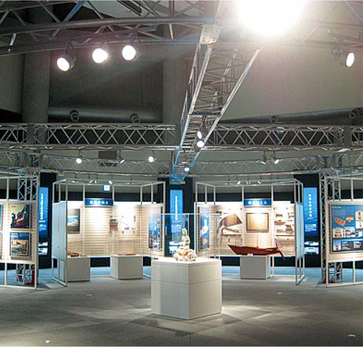宗像の歴史の流れをたどる郷土文化学習交流館。通常は上陸できない沖ノ島の世界を音と映像でリアルに紹介する3Dシアターは必見。
