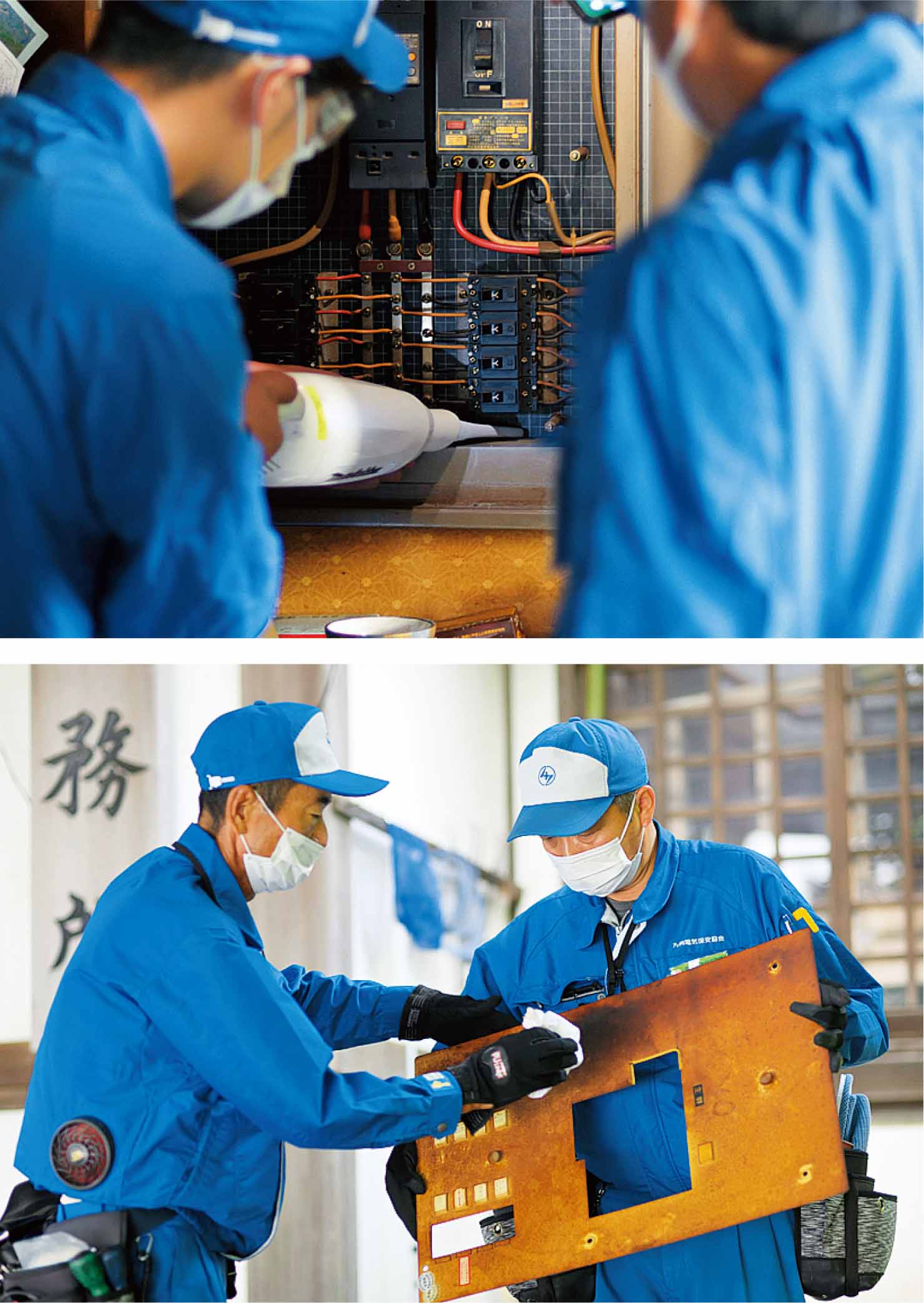 九州電気保安協会では地域への社会貢献活動の一環として、電気使用安全月間や文化財保護強調週間などで公共施設や福祉施設、文化財関係など公益性の高い施設における電気設備の特別点検を行っています。