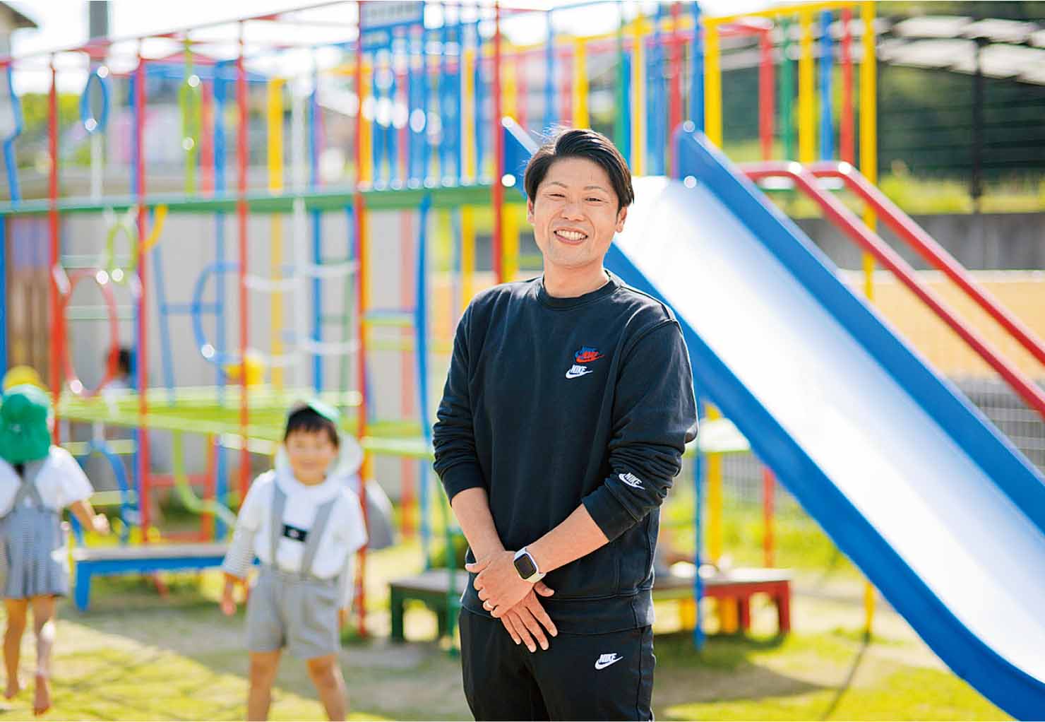 広々とした園庭で元気いっぱいな子どもたちが素足で縦横無尽に駆け回ります。ここは「かなさ保育園」。佐賀県みやき町と鳥栖市で保育所や学童保育を運営する社会福祉法人和貴福祉会が平成29年に開園した鳥栖市の認可保育所です。「かなさん」とは沖縄の方言で「愛おしい」という意味合い。かなさ保育園は、定員80名の園児たち(0歳児〜5歳児)一人ひとりを、保育士を中心にした29名のスタッフが大切に思い、慈しみながら保育しています。「いま、少子化や孤立化によって家庭の子育て環境が厳しい時代。共働きの親が子どもとじっくり向き合える時間は1日の中で1時間程度だと思います。ですから、本来は家庭でのしつけも保育園でできることは保育園でやってあげたい」と語るのは、同園の松雪貴祝園長。「その分、家庭での貴重な1時間は子どもをありのままに受け入れるコミュニケーションにしてほしい」