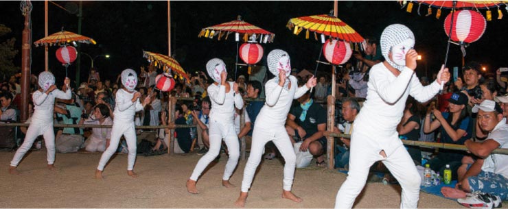 夏の姫島で見逃せないのが、国選択無形民俗文化財に指定されている姫島盆踊り。子どもたちによる愛らしい「キツネ踊り」「タヌキ踊り」の他、「アヤ踊り」や創作踊りなどユーモアたっぷりの趣向を凝らした踊りが披露されます。毎年8月14日・15日開催です。